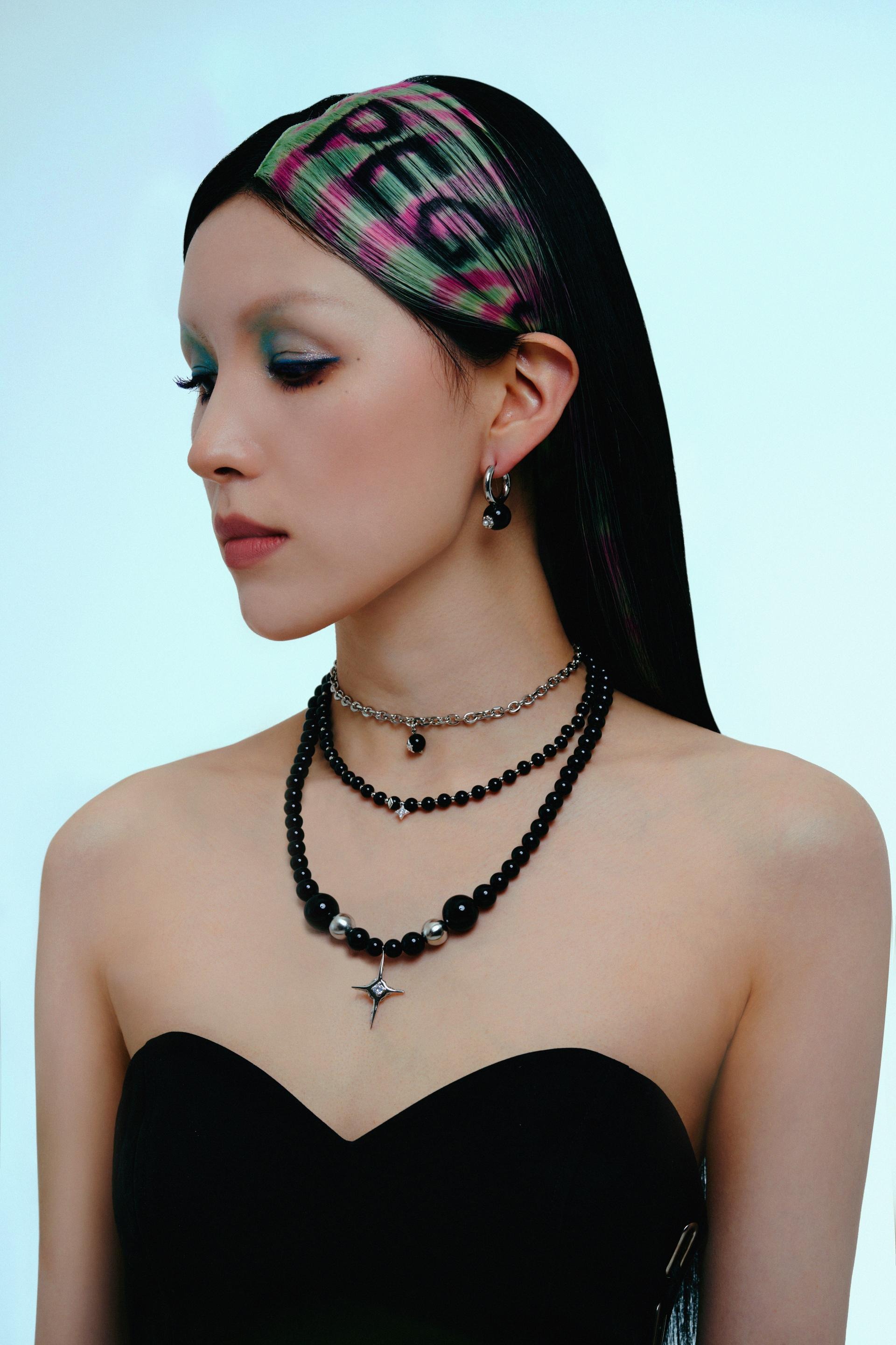 -Material : Onyx l(12mm), Rhodium, Brass, ccb